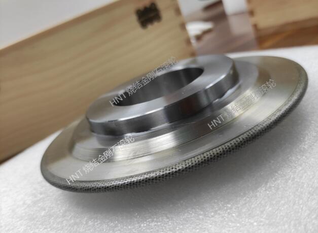 燒結(jié)HNT金剛石滾輪修整器:按圖紙要求加工一模具,之后采用人工植入方式,將大顆粒金剛石按一定的密度有序的鑲在模具內(nèi),之后采用燒結(jié)爐及粉末冶金技術(shù)燒結(jié),之后去掉模具,以金剛石型面為基準(zhǔn),加工孔和端面基準(zhǔn),之后再磨床上修整砂輪,計(jì)算出合適的修整余量,在專業(yè)的磨床上經(jīng)過(guò)多次反復(fù)的修磨和檢測(cè),直至符合成品圖紙要求。