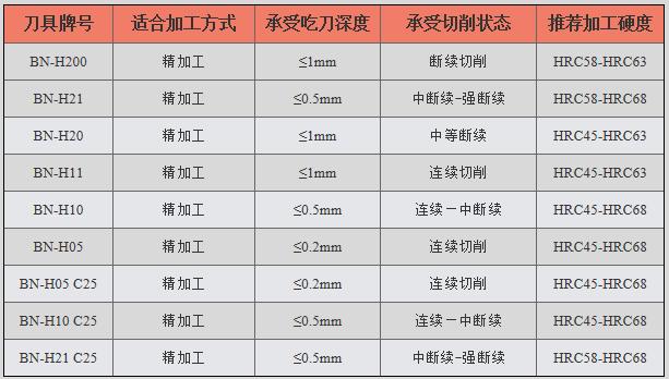 風電齒輪、風電軸承等大型零部件,多采用淬火鋼材質(zhì),硬度在HRC58-62。為應對這類材質(zhì),華菱推出高硬度、高耐磨性的全貼面CBN刀具BN-H系列刀片。這個H系列包含多種刀具牌號,不僅有BN-H200,還有適用于連續(xù)切削的BN-H05 CBN刀片,適用于輕斷續(xù)切削的BN-H10 CBN刀片,以及適用于強斷續(xù)切削的BN-H21CBN刀片等,必要時還可以添加涂層,以獲得更優(yōu)異的切削性能,提高加工精度和壽命。