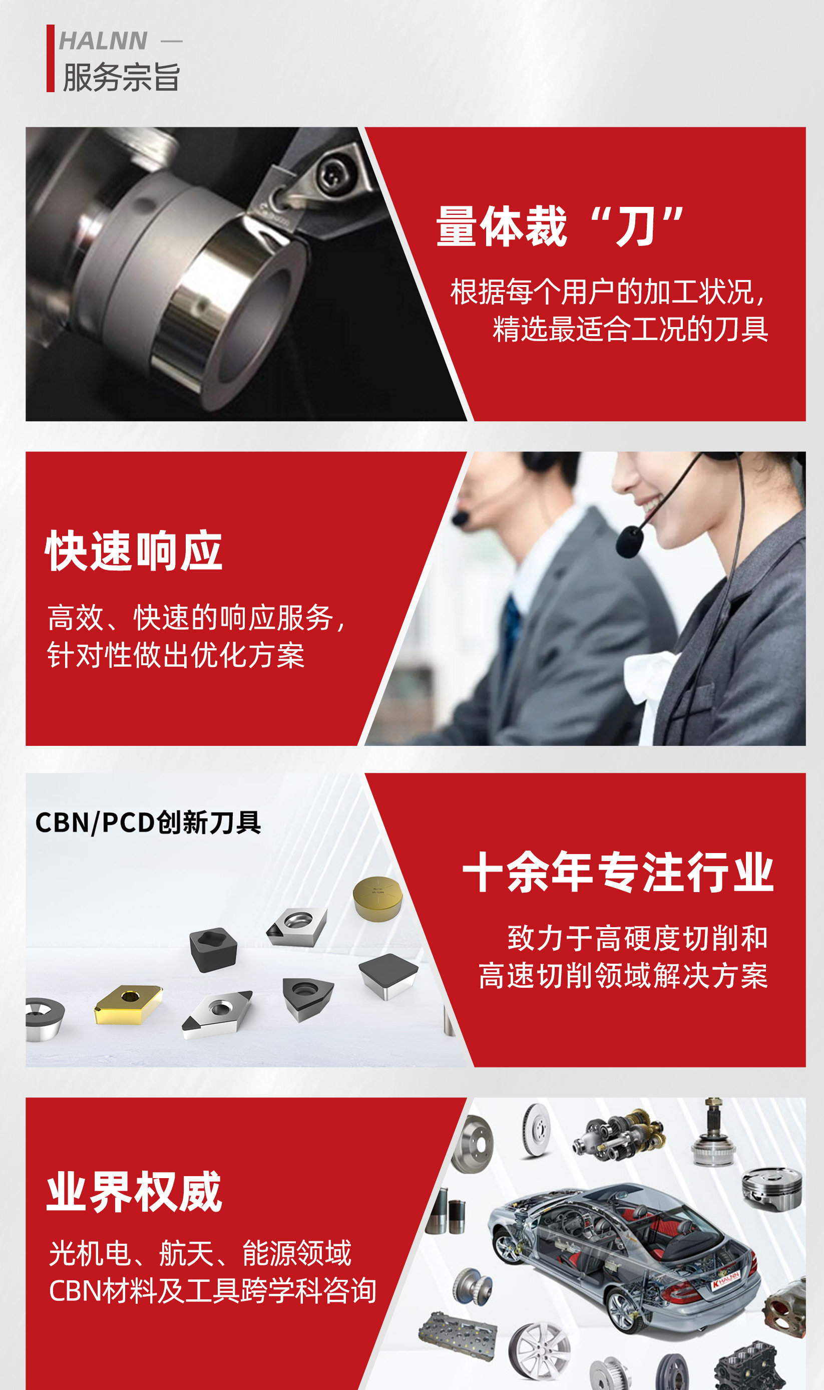 華菱超硬始終堅持“量體裁刀”的服務宗旨,根據每個用戶的加工狀況,精選最適合工況的BN-H05系列刀具,并提供快速響應服務和針對性的優(yōu)化方案。