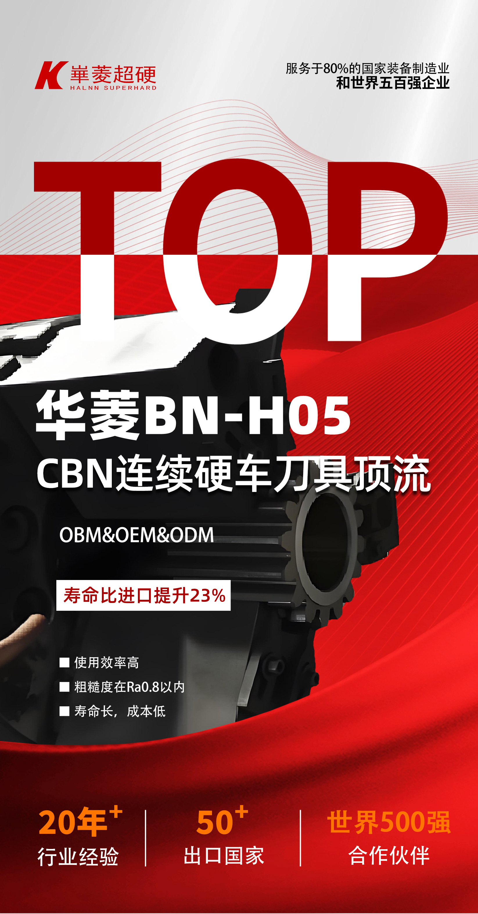 華菱超硬的BN-H05系列刀具服務于全球80%的裝備制造業(yè)和眾多世界五百強企業(yè),憑借50多個國家的出口網絡,成為硬車削技術的國際標桿。