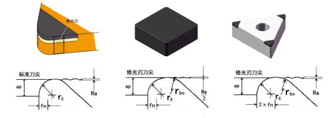 修光刃技術原則上也屬于“重復切削”,這意味著加工切削力相對較大,同時刀尖的圓弧角度也會發(fā)生變化。因此,有以下兩種加工情況并不適合使用修光刃刀具: