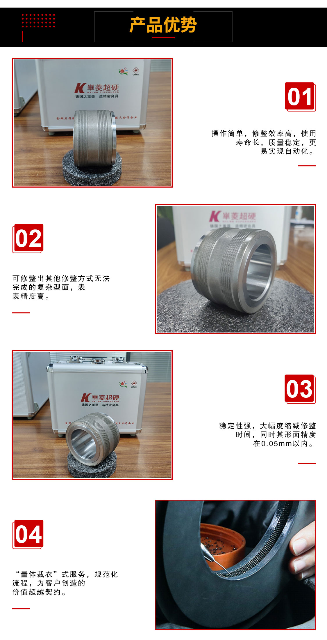 國內(nèi)超精密金剛石工具標(biāo)桿,國內(nèi)精密修整滾輪和精密電鍍鉸刀的行業(yè)標(biāo)準(zhǔn)起草單位。